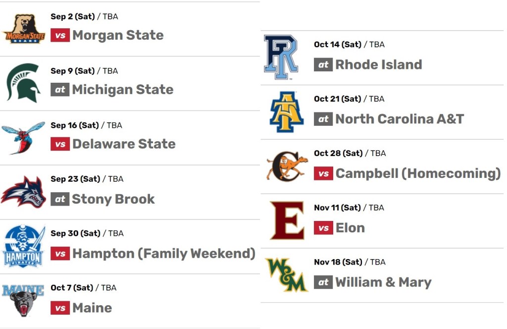 If we’re 90% as good as we all think we’ll be going 4-0 here isn’t absurd, but October offers some sneaky good games. Maine still isn’t back to their 2018 playoff days so that one at home should be the easiest of the four, however the next three aren’t pushovers. Rhody loses a fair amount but that roster is must deeper than it was five years ago. With an experienced dynamic QB, that is by no means an easy road game in Kingston. A&T and Campbell are new to the CAA but gave Gardner-Webb (who picked up a playoff win) a good battle down the stretch for the Big South title in 2022. Again, these aren’t 50/50 toss-up games but playing B- football will get you beat against those guys. Thankful that those are weeks 7-9 and not 3-5.