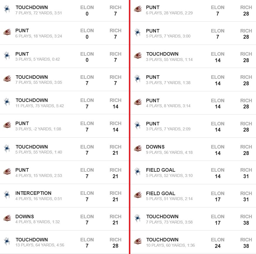 Coaches improve during the season too – We can talk about how far along the O-line has come, or how Savon Smith has returned to his old form in recent weeks, yet the two that deserve the most praise might be Co-OCs Winston October and Adam Ross. Not only has this offense turned into a group that can beat you in a variety of ways, but they’ve also had to navigate injuries to multiple QBs and win some big games with a true freshman QB. The downfield passing attack continues to shine each week, we’re getting our best players the ball in space, and we’re starting to find our powerful ground game again. It’s clear they hit the reset button after September and that has put the Spiders in a position to go win a CAA title. The 1st half they called on Saturday was one of the best in recent memory, capped off by a beautiful redzone design to get Savon wide open for a TD – one more gem from these two and we should be playing some Thanksgiving football.