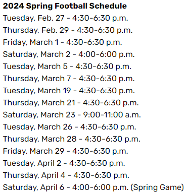 Spring Schedule