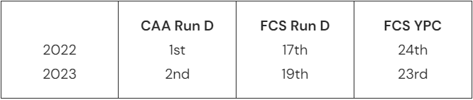 Their individual rankings are solid, but nothing better exemplifies the impact #5 and #44 (both new numbers in 2024) have had on the Spiders the past two seasons than the numbers above. As we enter 2024, both will be starters and key contributors to UR maintaining their solid run defense and overall excellent play on the defensive line.