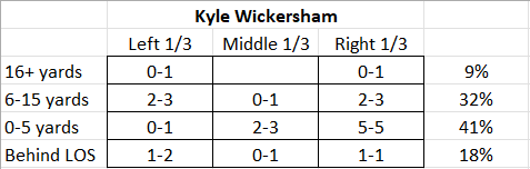 Passing chart – Below is Wickersham’s passing chart for the game: