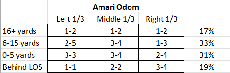 Odom came out firing to start the season – below is his passing chart against Gardner-Webb: