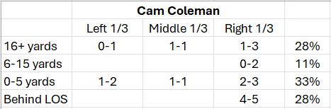 Coleman missed #1 wide open on one of his rollouts, so this isn’t exclusively on play-calling. However, when you only throw it 18 times it naturally lowers the ceiling of our offense. It’s important that we keep feeding the running game for 60 minutes, but I’m hoping our focus during the off week is finding that happy medium between a good rushing attack and still exploiting defenses with our weapons downfield.
