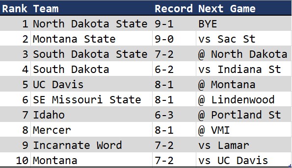 I haven’t spent too much time on Rhode Island because I’ve been waiting for this game. The Rams travel to Delaware to take on the Blue Hens. Delaware is coming off of a bye and we need a Rhody loss here. Not only does it keep UD power ranked as a top 10 team, it puts Rhody below us in the FCS standings. Hard to see UR getting a first-round bye if Rhody goes 8-0 in CAA play.