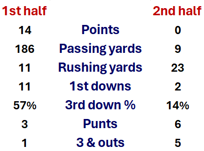 11 drives | 66 snaps – 5 TDs, 4 punts, 1 FG, 1 turnover