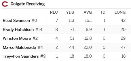 Maybe this is a product of three turnovers last game, maybe it was due to our lack of receivers. Given Colgate’s secondary and our willingness to work the ball downfield last weekend I did not expect the Spiders to end up with only 199 yards passing.