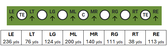 Plenty of yardage both inside and outside of the tackles along with over 600 yards after contact. There’s no one way to shut him down – this will have to be a group effort and it’s imperative we tackle well.