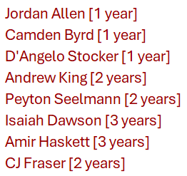 As of Sunday eight guys announced their intentions to leave through various social media postings. (Keep in mind no one can officially enter the portal until January 2nd.) Trey Gray and Donovan Hoilette have their X accounts showing agents/eligibility so I imagine they’ll enter at some point (but no official announcement yet).